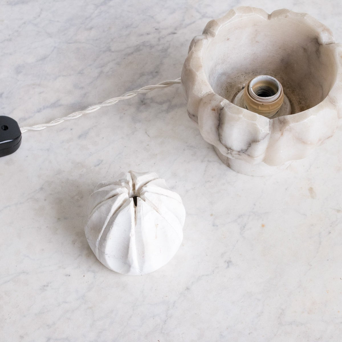 Crafted with precision, this lamp combines elegance and functionality, casting a warm, inviting glow that enhances your decor. Its unique lotus-inspired shape and luxurious marble finish make it a standout piece, perfect for creating a serene and sophisticated ambiance in your home or office.