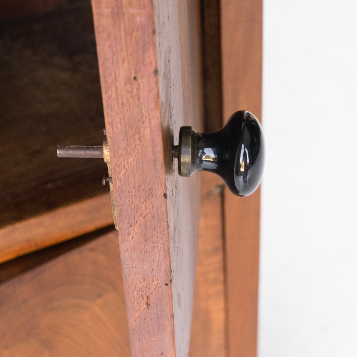- Lower cupboard has a single fixed shelf and original hardware with twist latch.